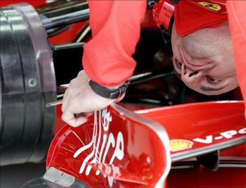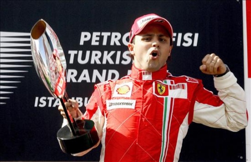 El piloto brasileño de Fórmula Uno, Felipe Massa, del equipo Ferrari, es fotografiado sobre su monoplaza durante la primera sesión de entrenamientos en el circuito de Estambul, en Turquía, hoy, viernes 09 de mayo. El Gran Premio de Turquía tendá lugar el próximo domingo 11 de mayo de 2008. EFE
