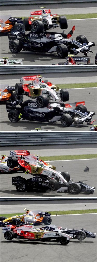Secuencia del accidente de Kazuki Nakajima y Giancarlo Fisichella. (EFE)