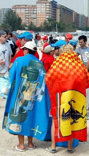 Varios aficionados durante la primera sesión de entrenamientos en el circuito urbano de Valencia. (EFE)