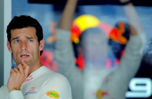 El piloto australiano Mark Webber (Red Bull), en los boxes el viernes por la tarde tras los entrenamientos. (EFE)