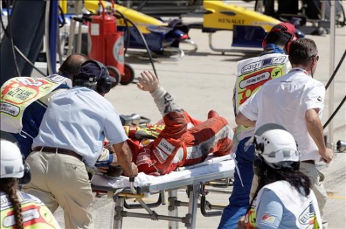 El mecánico no padece lesiones graves, según ha confirmado un portavoz de la escudería italiana. Al parecer, Kimi Raikkonen movió su coche antes de que hubiese concluido el repostaje y el mecánico fue atropellado por el neumático trasero derecho. (EFE)