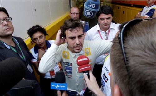 Fernando Alonso comparece ante los medios durante la rueda de prensa oficial de la FIA tras la primera jornada de entrenamientos. (EFE)