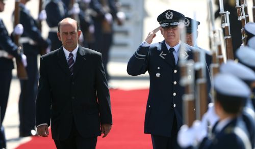 El presidente portugués, Aníbal Cavaco Silva, es recibido por su homóloga chilena, Michelle Bachelet. (EFE)