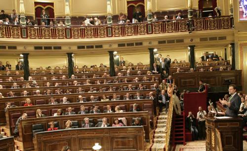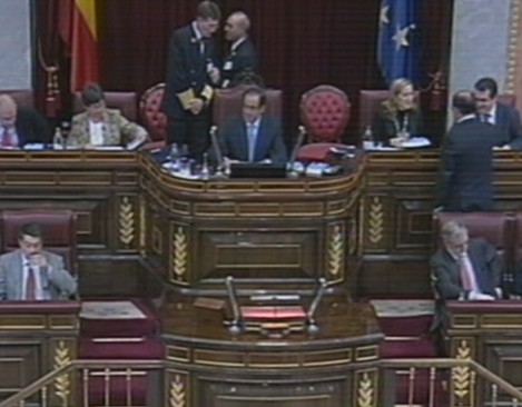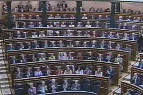 Toda la bancada popular obsequió con un caluroso aplauso a su lider Mariano Rajoy, tras su réplica a Zapatero. (Imagen LDTV)