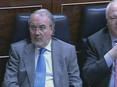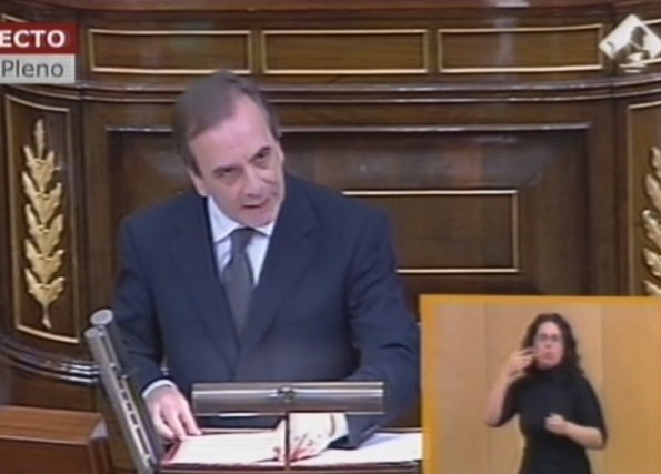 Arias Cañete hace gestos desde la bancada popular durante el debate. (Imagen LDTV)