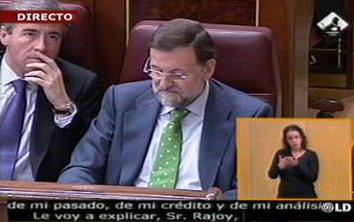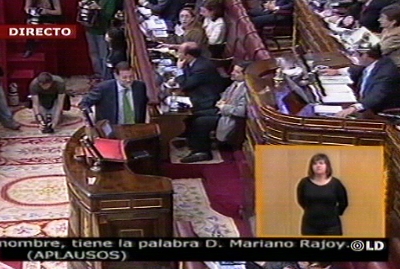 Momento en que Rajoy sube al estrado para contestar a José Luis Rodríguez Zapatero. (Imagen LDTV)