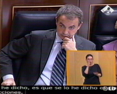 En su turno de réplica, Zapatero dijo a Rajoy que los credenciales para pedir la confianza de la Cámara "son las de 11 millones de españoles, las credenciales de la democracia. Es probable que otros piensan de otra manera, pero eso es otro régimen político. En democracia la confianza la otorgan los ciudadanos". (Imagen LDTV)