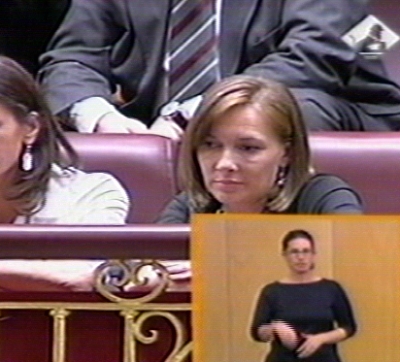 Cristina Narbona escucha, con atención, el debate sobre el agua. (Imagen TV)