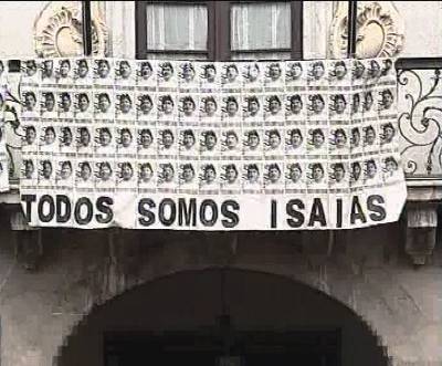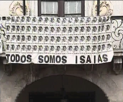 Un pancarta en la plaza de Mondragón rezaba el sentir de todos los presentes: "Todos somos Isaías". (LDTV)