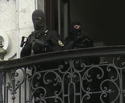 En el Ayuntamiento, situado en el otro extremo de la plaza, había varios francotiradores de la policía apostados en las ventanas. (LDTV)