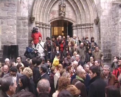 El obispo de San Sebastián, Juan María Uriarte, ofició la ceremonia religiosa a la que acudieron el secretario de Organización del PSOE, José Blanco (c); el presidente y el secretario general del PSE, Jesús Eguiguren y Patxi López además del portavoz parlamentario del PP, Eduardo Zaplana. (LDTV)