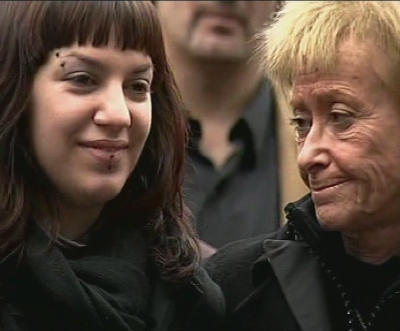 Los representantes de los Gobiernos central y vasco y dirigentes de todos los partidos políticos democráticos secundaron la concentración convocada en Mondragón para expresar su rechazo a ETA y arropar a la familia. En la imagen De la vega con la hija mayor de Isaías Carrasco, Sandra Carrasco. (LDTV)