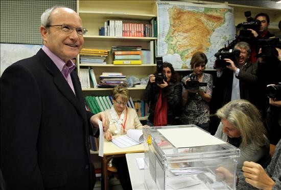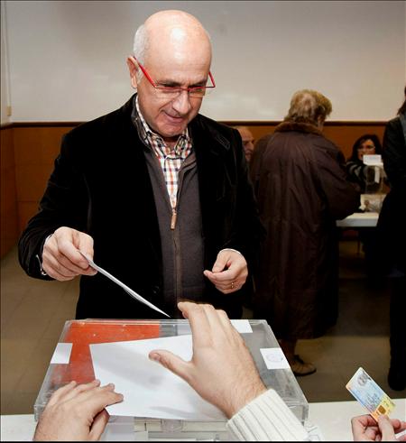 El secretario general de la Federación de Convergencia i Unió ( CIU), Josep Antoni Durán i Lleida, en el momento de emitir su voto este domingo en el barrio de Sarria, en la elecciones autonómicas que se celebran hoy en Cataluña
