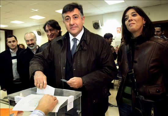 El candidato del PSC, José Montilla, se dispone a emitir su voto esta mañana en la Escuela de Adultos de Sant Just Desvern (Barcelona), en las autonómicas que se celebran este domingo, donde ha hecho un llamamiento a la participación para tener "un gobierno más fuerte"