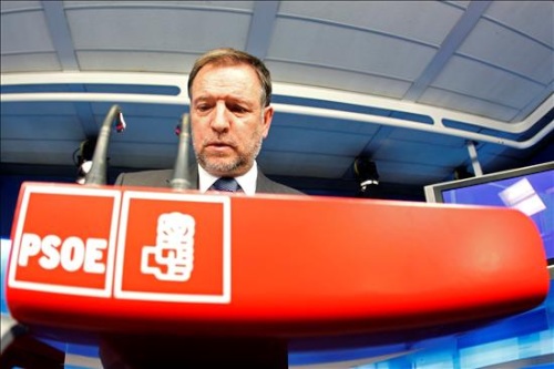 El secretario de Organización del PSOE, Marcelino Iglesias, durante la rueda de prensa en la sede en Madrid para valorar el desarrollo de la jornada electoral en Cataluña.