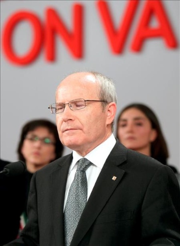 El candidato de Esquerra Republicana de Cataluña ( ERC ) a la presidencia de la Generalidad, Joán Puigcercós, emite su voto domingo en la escola Josep Tous del barrio de Sants, en la elecciones autonómicas que se celebran este domingo, donde ha pedido a los catalanes que vayan a votar a sus respectivos colegios electorales a fin de que el Parlamento catalán "sea muy representativo" de lo que es la sociedad catalana actual