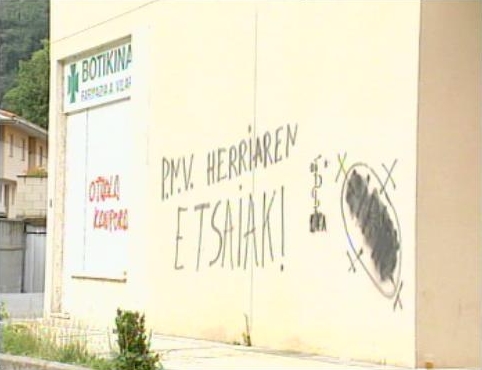 Amenazas contra el PNV firmadas con el anagrama de ETA en una calle de Lizarza.