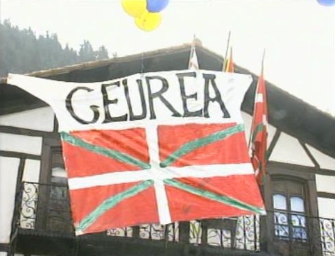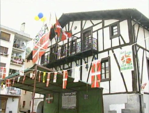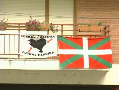 Numerosos vecinos han colocado la ikurriña y la bandera-símbolo de Askatasuna-ETA, reivindicando el reagrupamiento de los terroristas de ETA en prisión vascas.