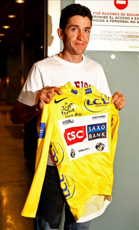 Con la camiseta amarilla en la mano, Sastre ha reiterado lo feliz que sentía por haber hecho realidad el sueño de su vida. (EFE)