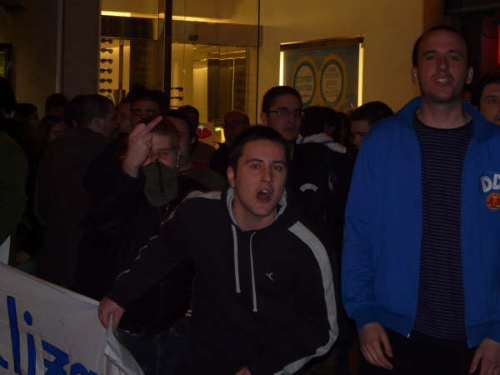 Al grito de "fascistas", un grupo de independentistas radicales reventó un acto convocado por la Mesa por la Libertad Ligüística en La Coruña. (LD)