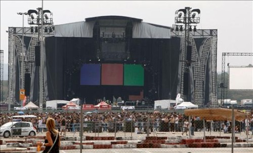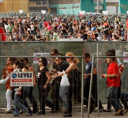 Un gran número de personas corren al escenario tras la apertura del circuito Ricardo Tormo de Cheste, horas antes del concierto de Madonna.(EFE)