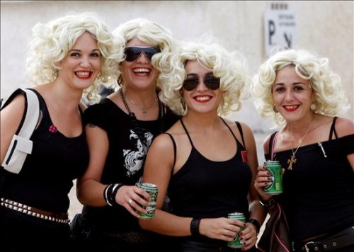 Varias jóvenes junto al escenario del último de los dos conciertos en España que ofreció Madonna. (EFE)