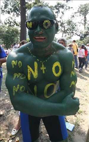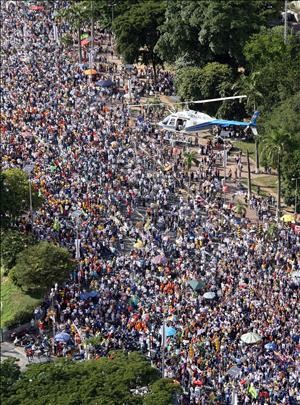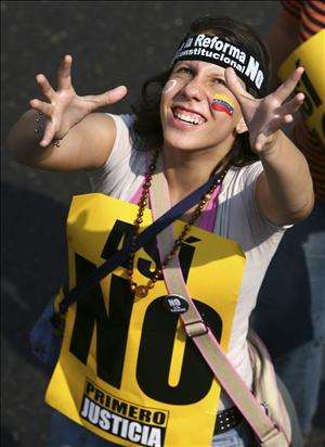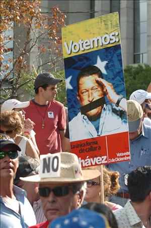 Líderes estudiantiles y políticos se dirigieron a los manifestantes reunidos en la avenida Bolívar y reiteraron su llamamiento a asistir masivamente a las urnas para rechazar la propuesta de cambios constitucionales de Chávez.(EFE)