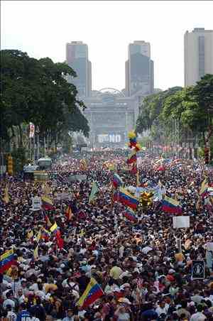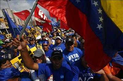 Miles de banderas venezolanas fueron llevadas a la marcha a favor del NO en el referéndum. (EFE)