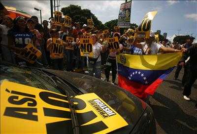 Los manifestantes llevaban pancartas en las que se podía leer "la única forma de callar a Chávez", "Chávez, se te acabó la leche", y "así no", para mostrar su desacuerdo. (EFE)
