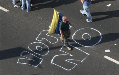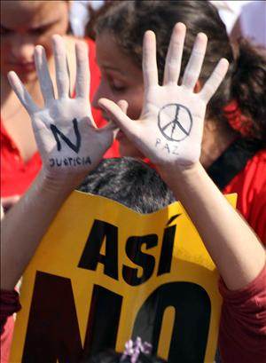 El "NO" ha estado presente en muchas camisetas y pancartas de los participantes. (EFE)