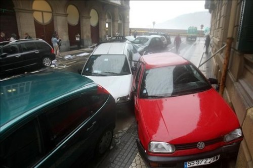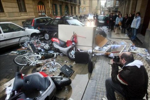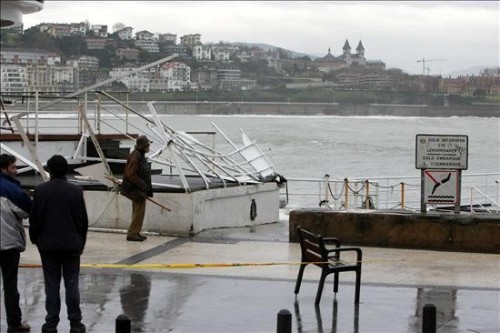Destrozos causados en el Club Naútico de San Sebastián a causa del temporal que azota la costa guipuzcoana, donde se han registrado olas de 9,5 metros de media, que han hundido unas cincuenta embarcaciones en el puerto de San Sebastián y han inundado numerosos bajos en la parte vieja donostiarra. (EFE)