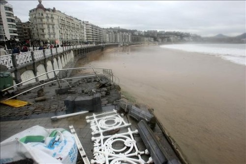 Destrozos causados en el paseo de la Concha de San Sebastián debido al temporal que azota la costa guipuzcoana. (EFE)