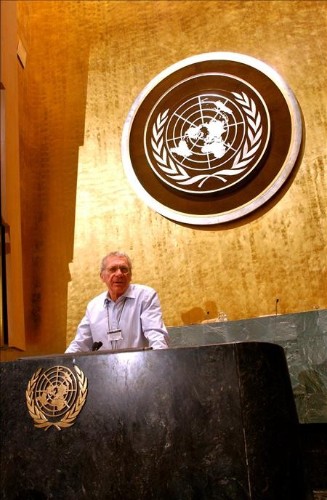 Pollack captado el 21 de abril de 2005 en el edificio de las Naciones Unidas en Nueva York, donde rodó algunas escenas de su película "El intérprete". (EFE)