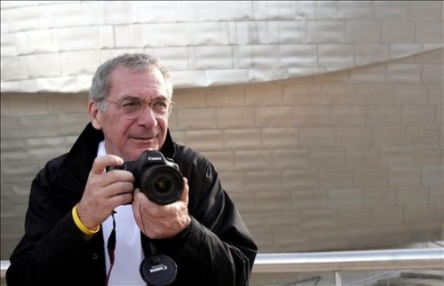 Imagen de Pollack durante el rodaje de un anuncio publicitario en el Museo Guggenheim Bilbao, para el creador de la pinacoteca, el arquitecto Frank O. Gehry. La fotografia fue tomada el 9 de octubre de 2000. (EFE)