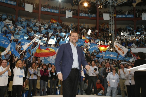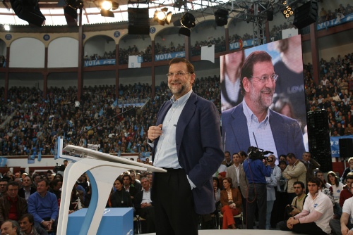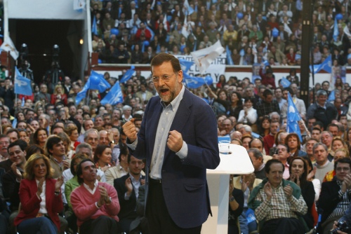 A juicio de Rajoy, Zapatero "huye de la moderación, del equilibrio, de la razón y va desesperado y como un poseso a pedir el voto de los radicales" y le acusó de estar "en la inopia y en babia". (Fernando Cárdenas)