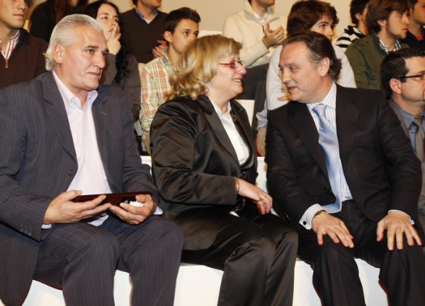 Alfredo Prada y la madre de Sandra Palo posaron junto con algunos de los presentes en el acto. (Foto: Pedro González)