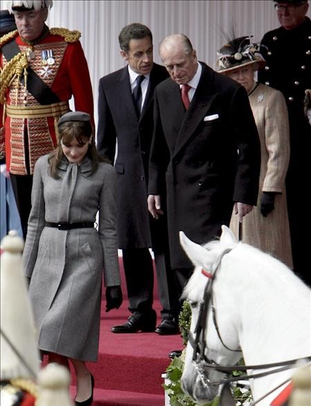 El presidente de la República francesa, Nicolás Sarkozy, y su esposa, la cantante Carla Bruni, fueron recibidos el miércoles con honores por la Reina Isabel II y el Duque de Edimburgo en el Castillo de Windsor en Londres. Iniciaban así su visita oficial de dos días a Inglaterra.