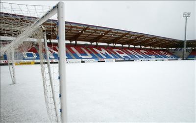 El campo de fútbol de los Pajaritos de la capital soriana, cubierto por la nieve. EFE