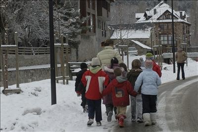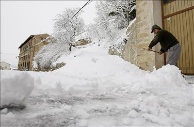 Una persona limpia de nieve la puerta de su domicilio tras la nevada caída en las últimas horas en la localidad navarra de Ujue. EFE