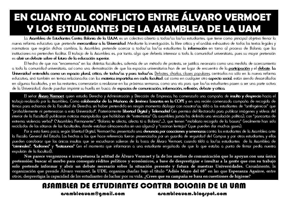 Octavilla repartida por los acampados en la UAM contra Álvaro Vermoet, Libertad Digital y Telemadrid.