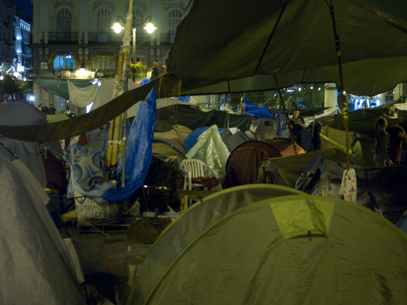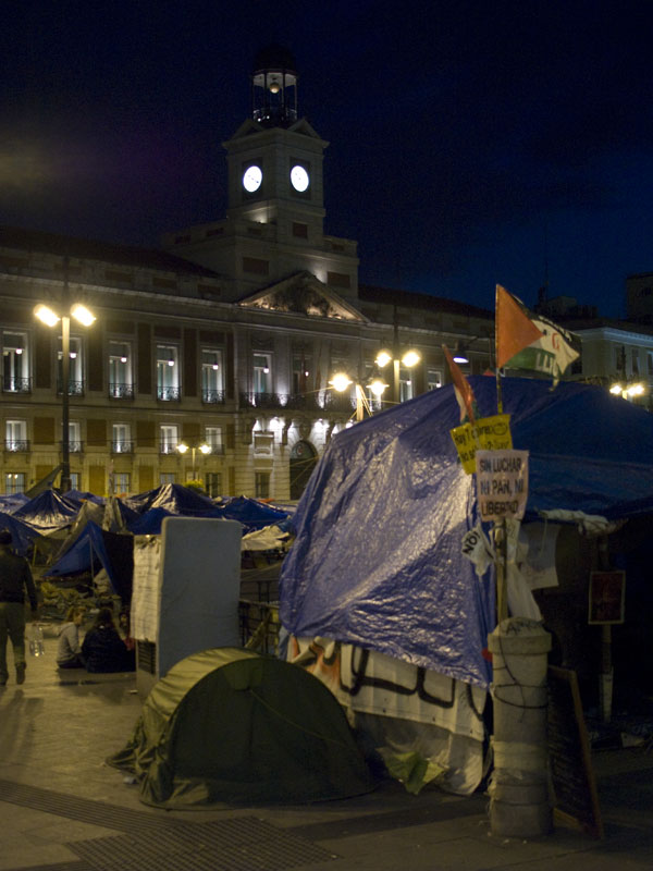 Unos acampados se reúnen en una jaima al filo de la medianoche. La asamblea ya ha emitido su veredicto y ahora viene la reflexión.