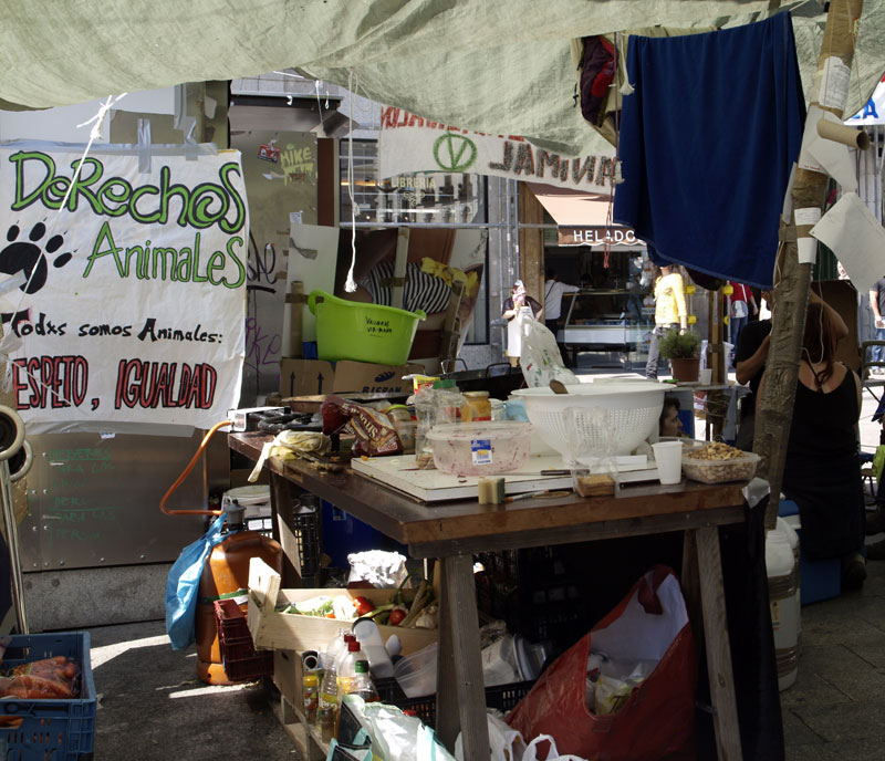En esta cocina, dotada de su preceptiva bombona de butano, solo se cocina comida vegetariana. Está en el chamizo del animalismo.