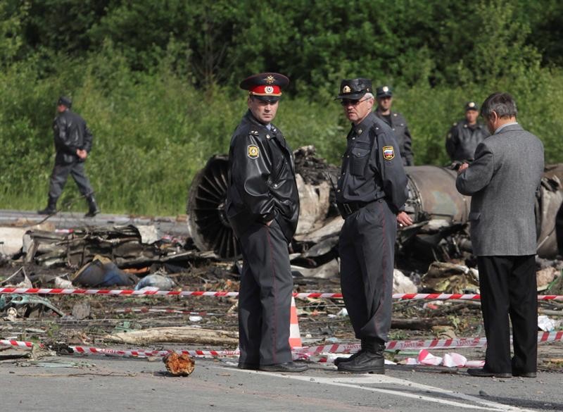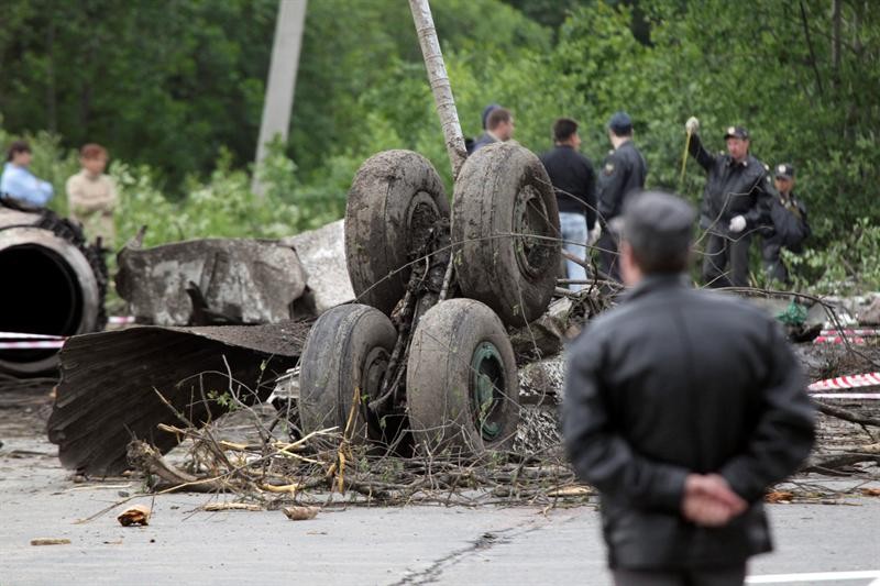 Al menos cuarenta y cuatro personas murieron y ocho resultaron heridas en el accidente del avión de la compañía Rusair ocurrido a escasos metros del aeropuerto. EFE