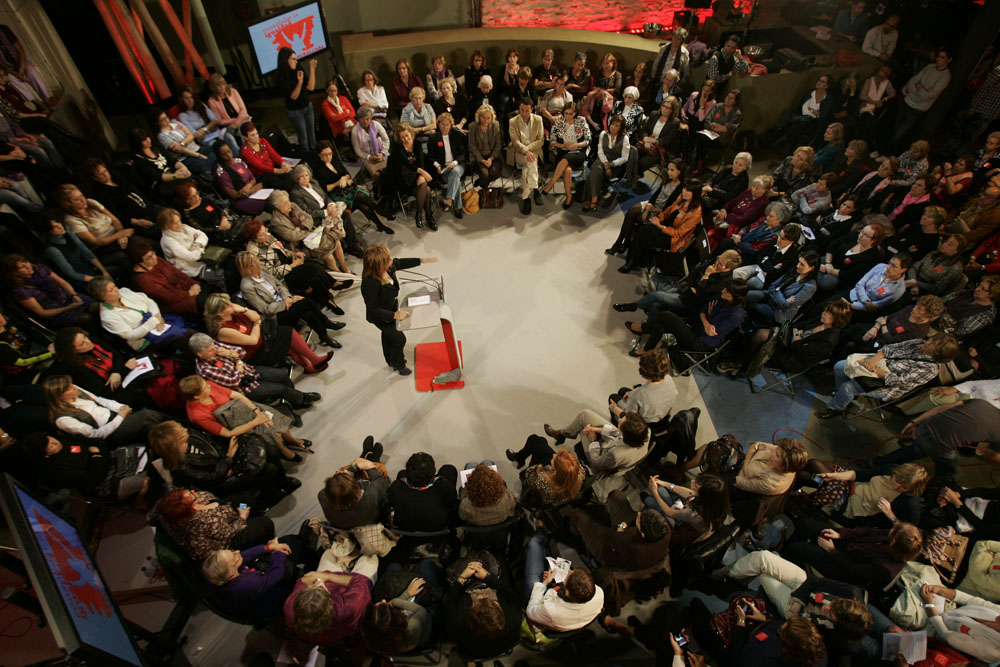 Otro momento del encuentro, dedicado a ensalzar las políticas sociales de los dos gobiernos de Zapatero con especial mención a la reforma de la Ley del aborto.