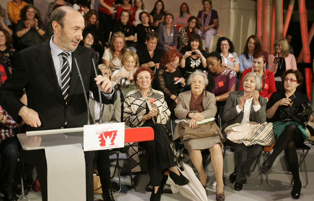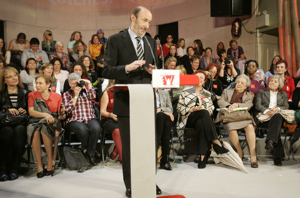 Rubalcaba fue muy crítico con el PP y pidió apoyo a las mujeres para evitar su acceso al poder.