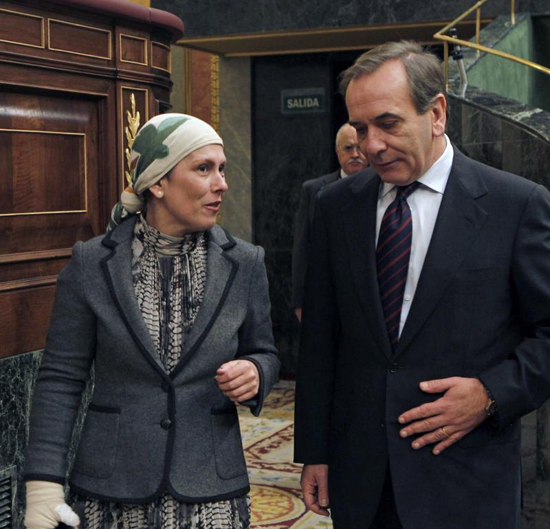 La diputada de Gueroa-BAI Uxue Barcos conversa con el portavoz del PSOE en el Congreso, José Antonio Alonso, poco antes de la sesión de constitución de la cámara en la que toman posesión de sus escaños los parlamentarios de la X legislatura