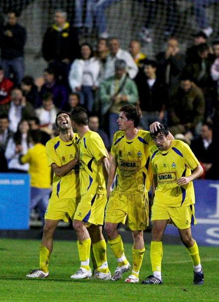 Los jugadores de la AD Alcorcón celebran el tercer gol del equipo, conseguido por Ernesto.