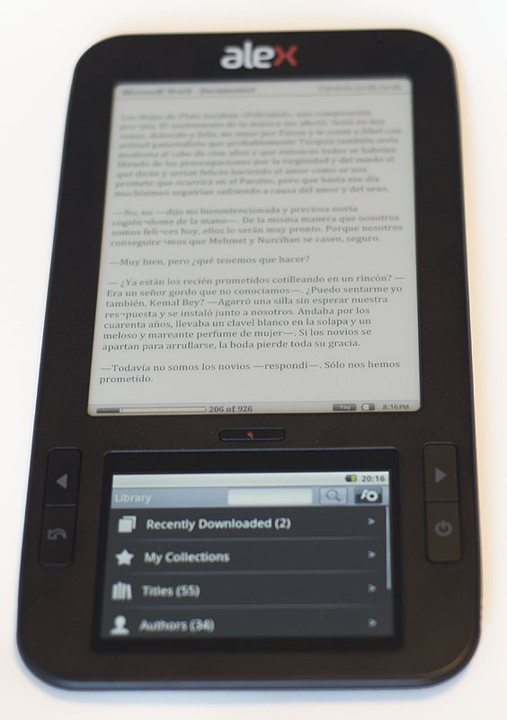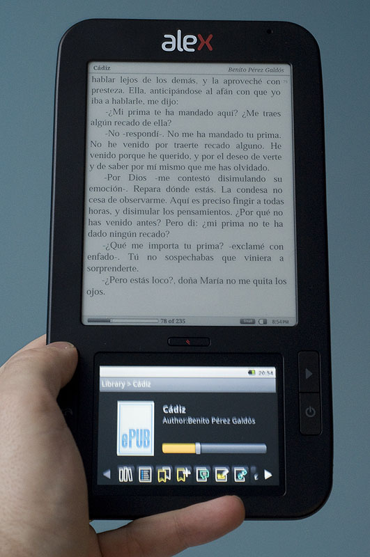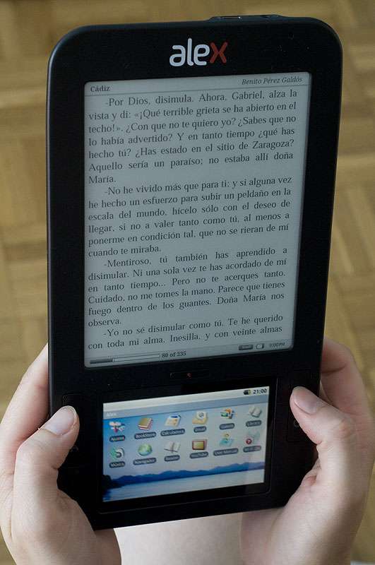 Sujetar el Alex con una mano resulta poco práctico, y es muy difícil pasar página