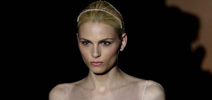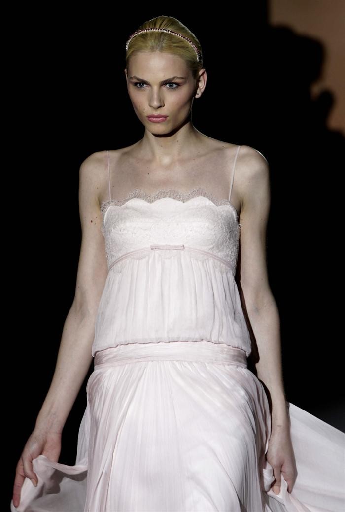 Rosa Clará presentó este martes su nueva colección en la pasarela Gaudí novias. Entre los modelos estaba el modelo bosnio Andrec Péjic.