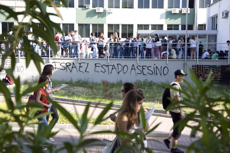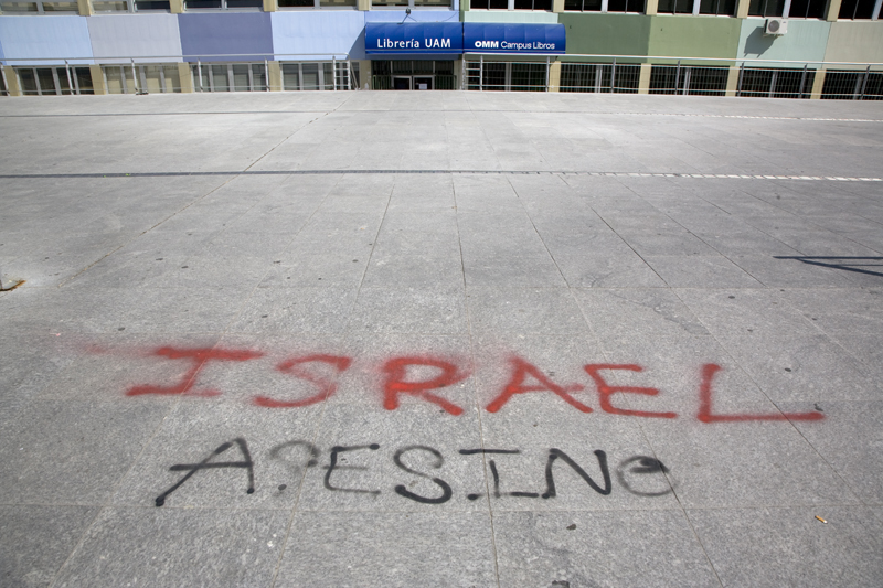 "Israel Estado Asesino". Esto es de lo primero que se encuentra un visitante al llegar al campus de Cantoblanco. Todo un aviso a navegantes.